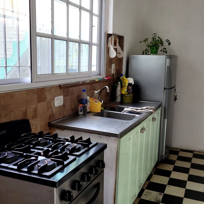 COCINA COMEDOR CON PISO DAMERO. MUEBLES BAJO MESADA, TERMOTANQUE Y CONEXION PARA LAVARROPAS.